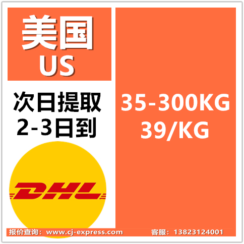 大陆DHL到美国 2-3天到 35KG起 39/KG B类时效稳定提取