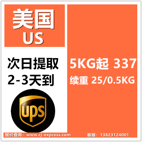 大陆UPS小货5KG起337 续重25 B类时效提取 整体时效3-4天
